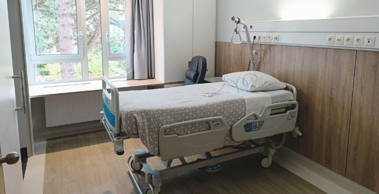 - Wider doors for easier bed access and fully equipped bed panels for medical needs (medical gases, electrical outlets).
