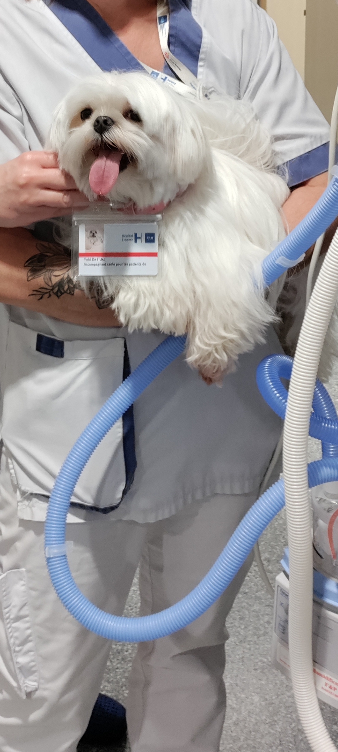 Depuis trois ans maintenant, un membre du personnel particulier apporte un rayon de soleil dans les chambres du service des soins intensifs de l'Hôpital Erasme. Yuki, un bichon maltais à la blancheur immaculée, a pris ses fonctions le 25 décembre 2022 et continue d'adoucir le quotidien des patients hospitalisés.